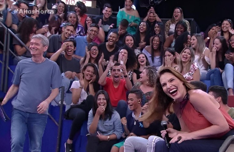 Além da conversa com o público, ela também entrou no quadro “Jogo das 3 Pistas” no qual dividiu o palco com a empresária e ex-modelo Luiza Brunet.